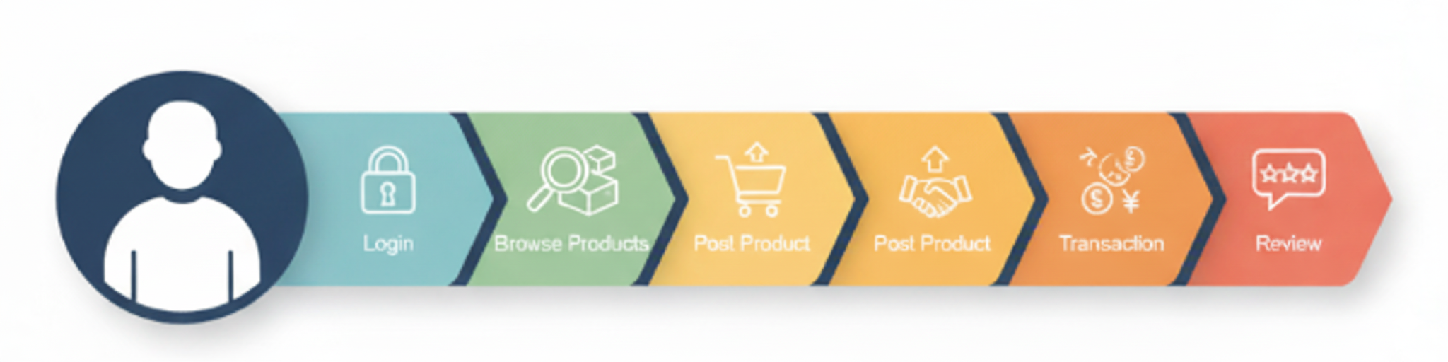 - For example: Login, Browse products, Post products, Transactions, Reviews, etc.